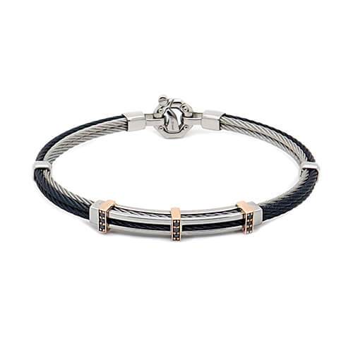 Rose Gold Bracelet with Stainless Steel, Blue PVD and Diamonds