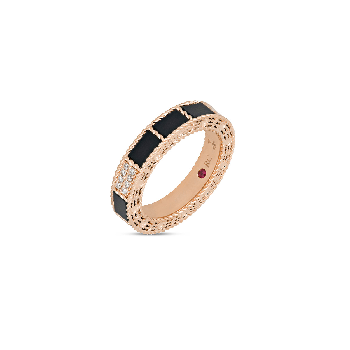 Rose Gold Ring with Diamonds, Black Jade and Ruby