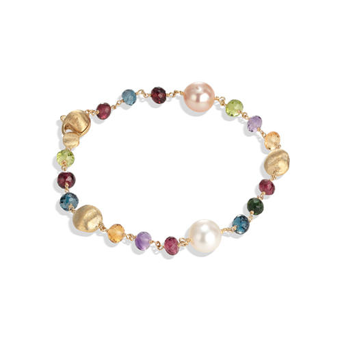 Multicoloured Bracelet with 18kt yellow gold spheres, gemstones and pearls