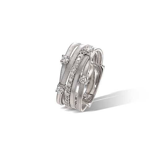 18kt White Gold five-strand Ring with prong-set diamonds and a diamond-studded plaque