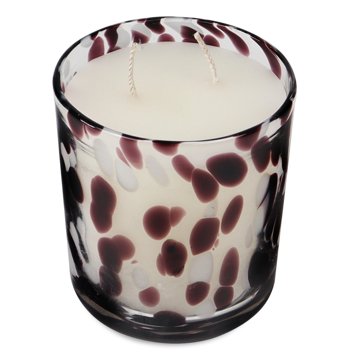Μεσαίο Λευκό Αρωματικό Κερί σε Λευκό-Καφέ Σκούρο Λεοπάρ Γυάλινο Κασπώ