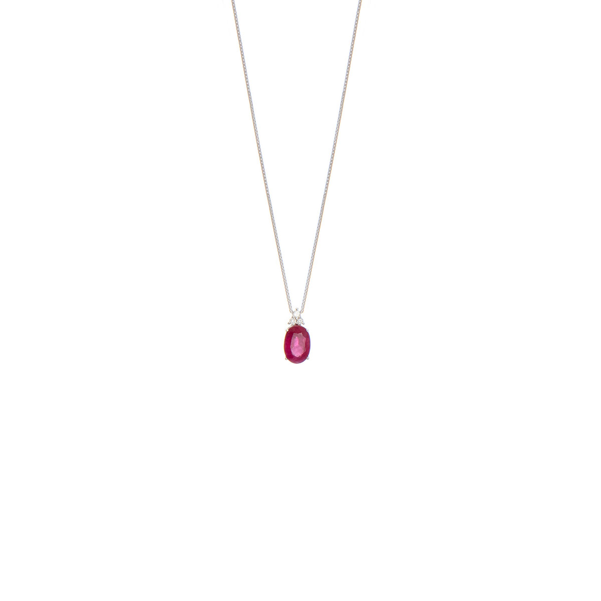 White Gold Necklace with Diamonds and Ruby Κ18 Diamonds: 0,03 ct Ruby: 0,46 ct
