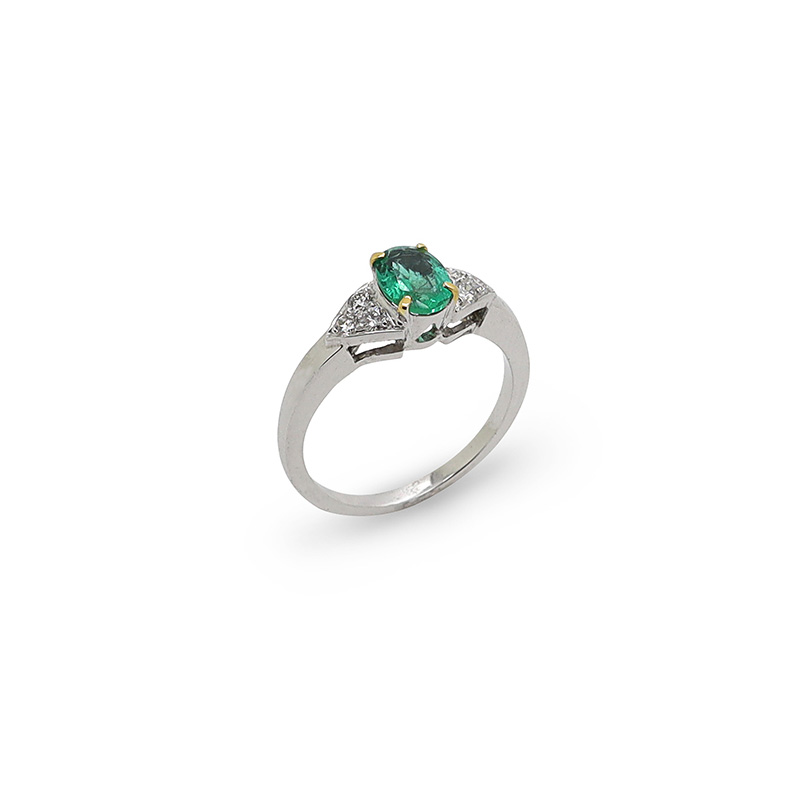 White Gold Ring with Emerald and Diamonds