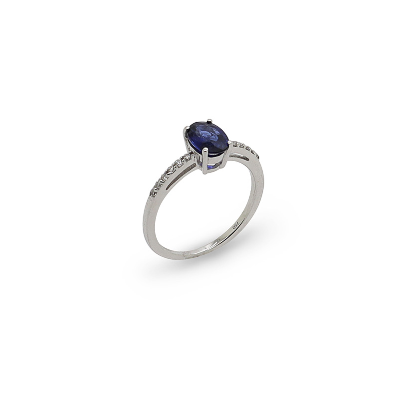 White Gold Ring with Diamonds and Sapphire