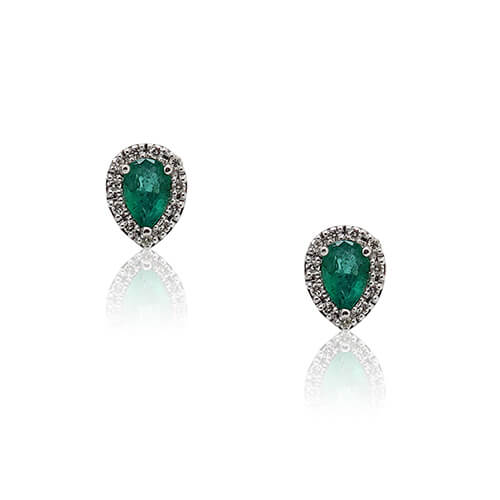 White Gold Earrings with Diamonds and Emerald