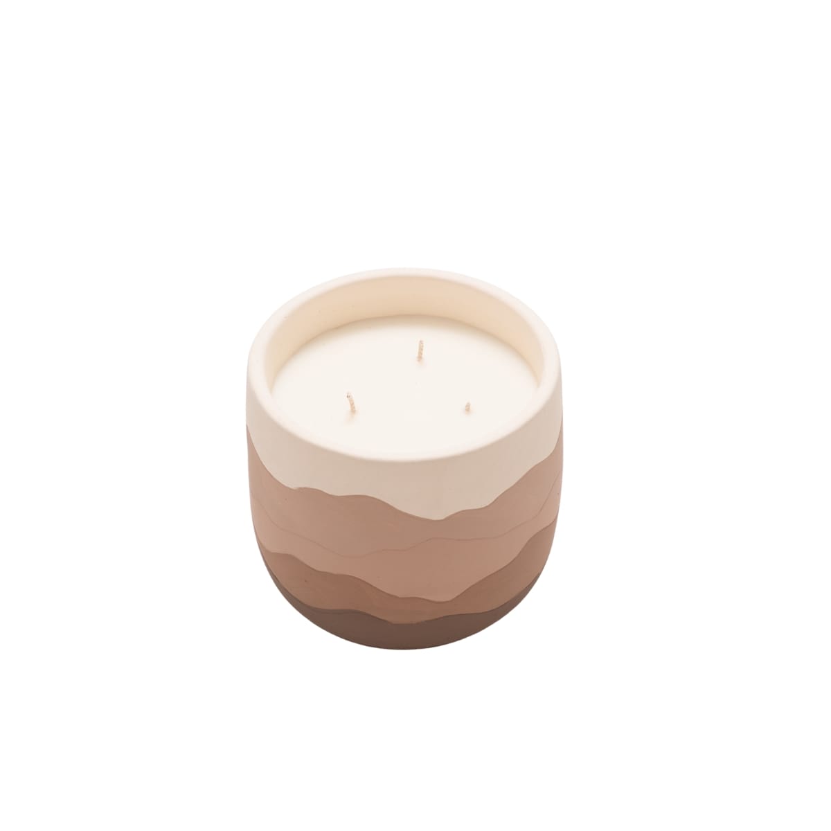 Μεγάλο λευκό αρωματικό κερί σε μπεζ κεραμικό κασπώ.