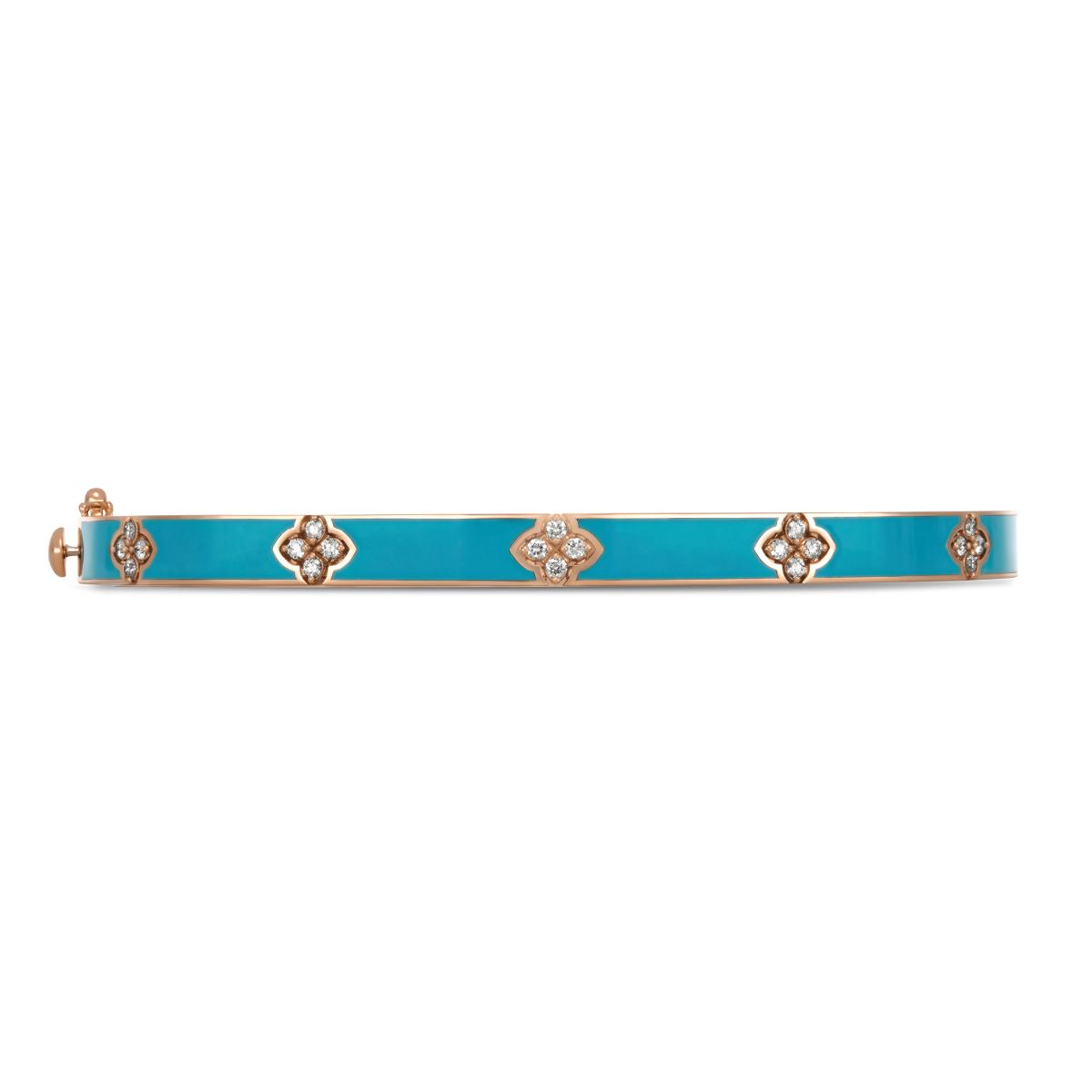 Rose Gold Bracelet with Ceramic Turqoise Enamel, Diamonds, and Ruby